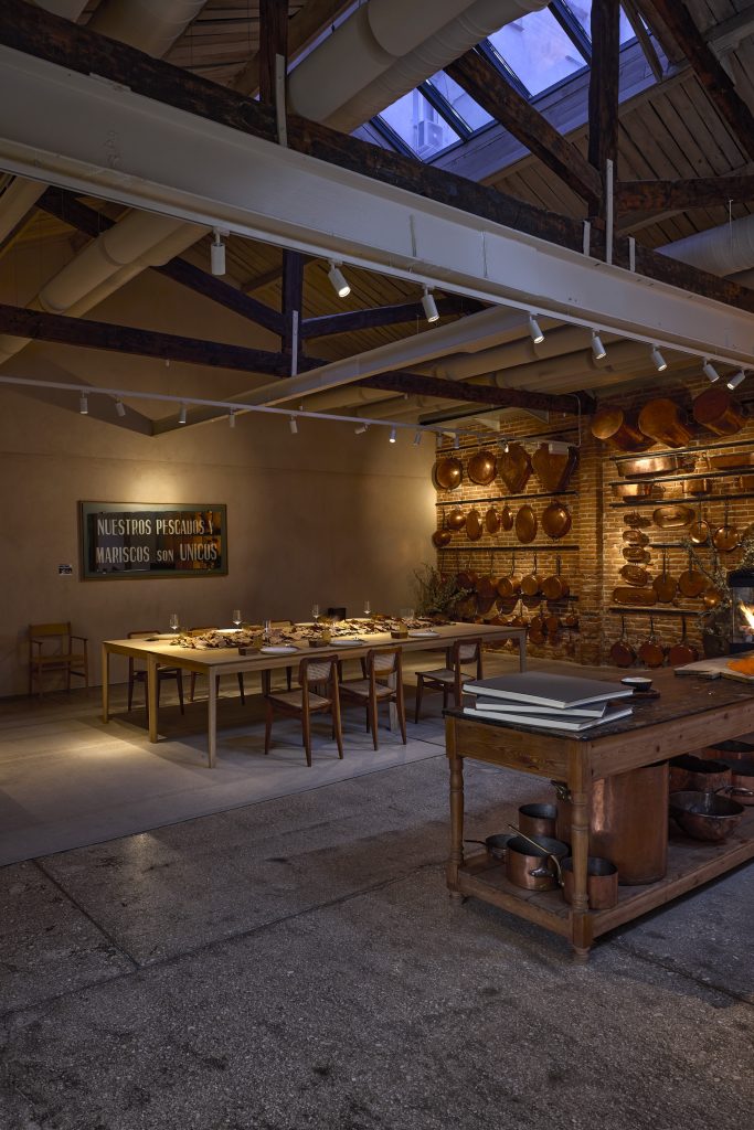 De inspiración nórdica en su distribución y decoración, el restaurante cuenta con tres espacios claramente diferenciados: la sala, con vistas a la cocina a través de un amplio ventanal; el patio central, abierto y ajardinado con frondosos árboles de hoja caduca, fuente de luminosidad y escenario para aperitivos y sobremesas; y el reservado.